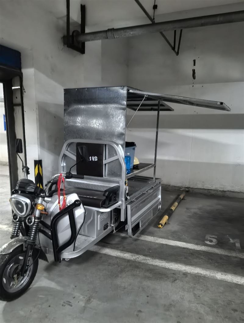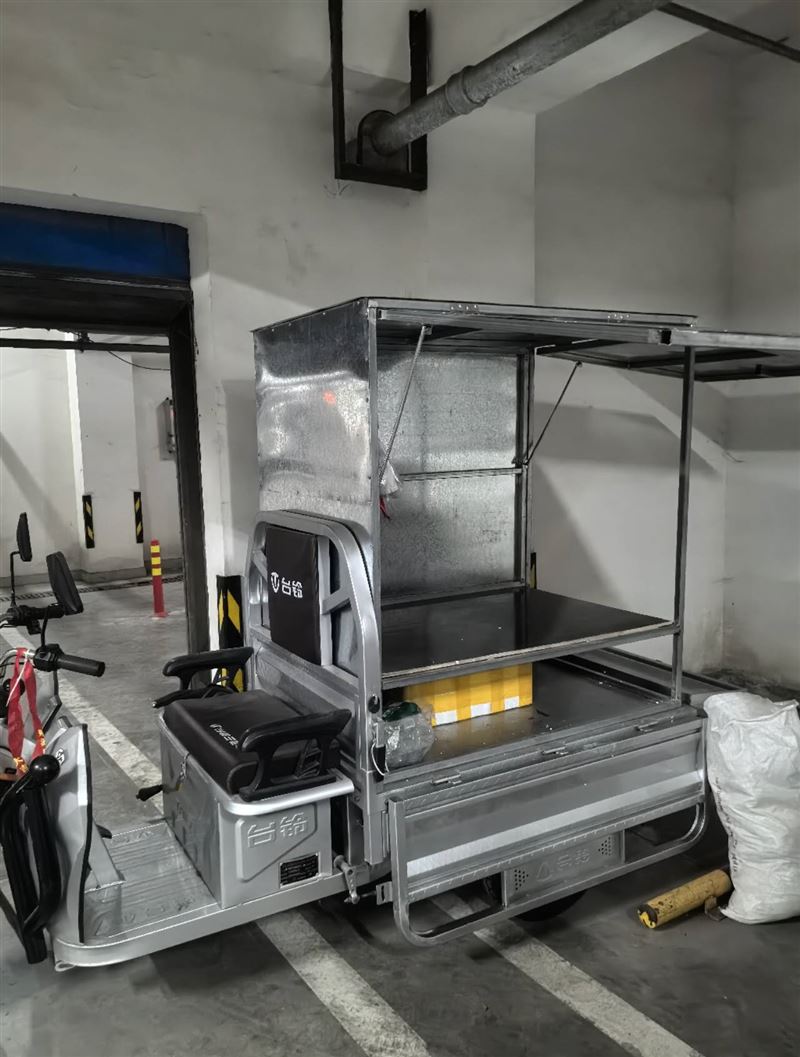 电动三轮车三面可以打开支起来,买了几个月..